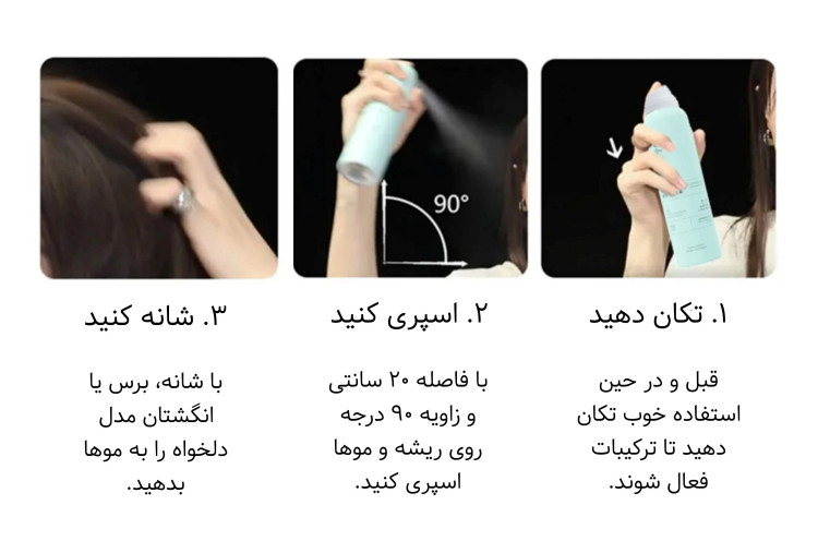 • این اسپری شامپو خشک اینطوریه که در کمترین زمان ممکن با اسپری رو موهاتون ظاهری تمیز تر به موهاتون میده که دیگه نیاز به حمام نیست ! •